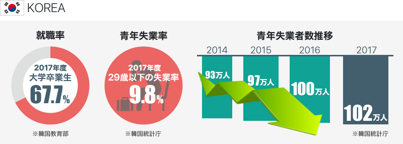 このような状況が後押しして、韓国国内でよりも海外に職場を求める若者が近年増加しております。