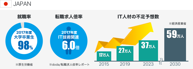 特にIT人材については、2030年までに59万人が不足すると言われております。
